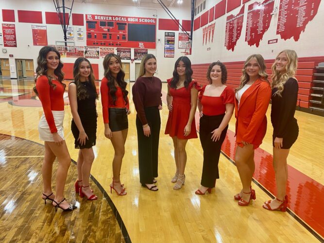 The Beaver Local Winter Homecoming Court for 2026, from left, freshman attendant Georgianna Long; senior attendants Ashley Cooper, Jiaqi Lin, Alaini Bock, Isabella McLevey, Brenna Cunningham; sophomore attendant Mya Anderson; and junior attendant Lily Schrieber. The crowning of this year’s ...