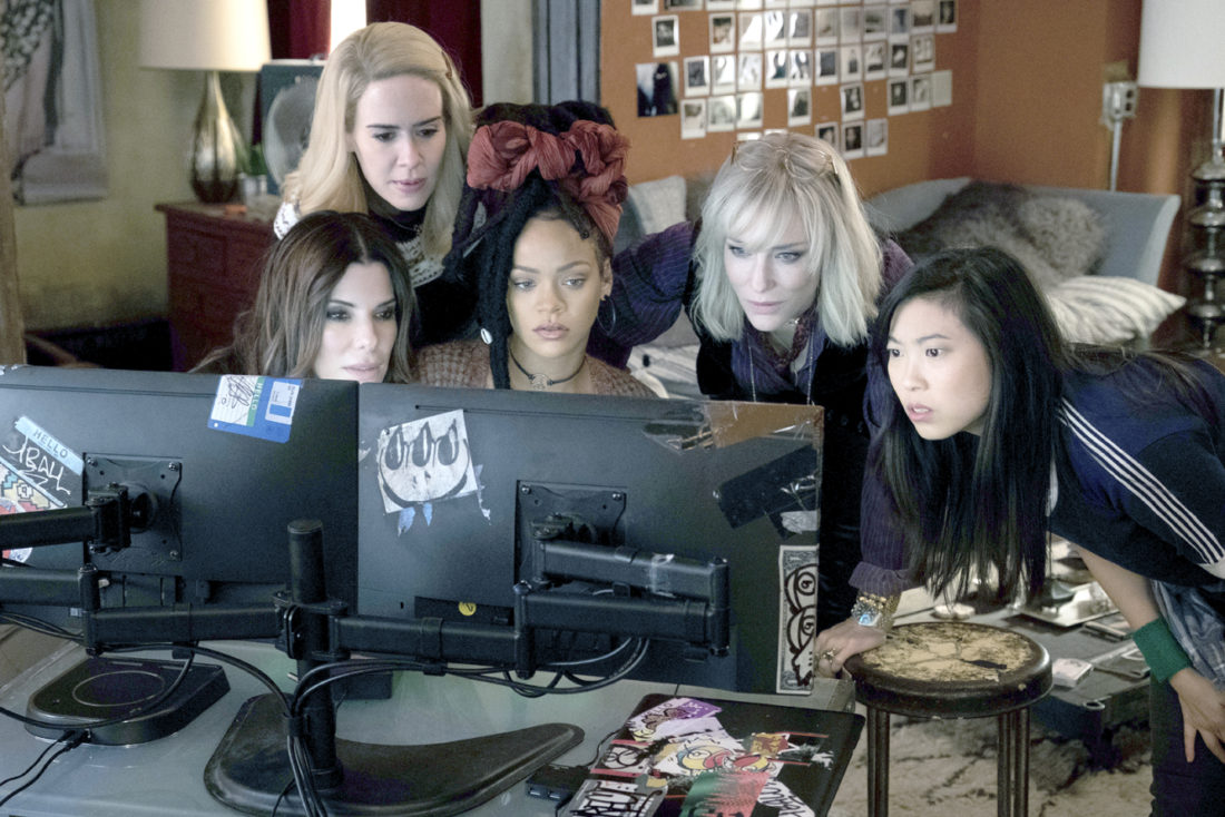 The team includes Lou (Cate Blanchett), who dresses like a glam rocker and spends her time watering down well vodka for profit; Rose Weil (Helena Bonham Carter), a kooky past-her-prime fashion designer desperate for a comeback; a jeweler in a rut, Amita (Mindy Kaling); Nine Ball (Rihanna), a hacker in dreadlocks; Constance (Awkwafina), a pickpocket; and Tammy (Sarah Paulson), a suburban mom who can’t quite quit her white collar crime ways.