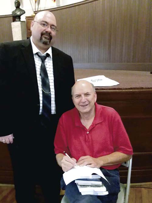 Special to the Journal/Wendy Wolfgang Philip Zuzolo of Niles, left, poses for a photo with sportswriter Terry Pluto following Pluto’s presentation in Niles.