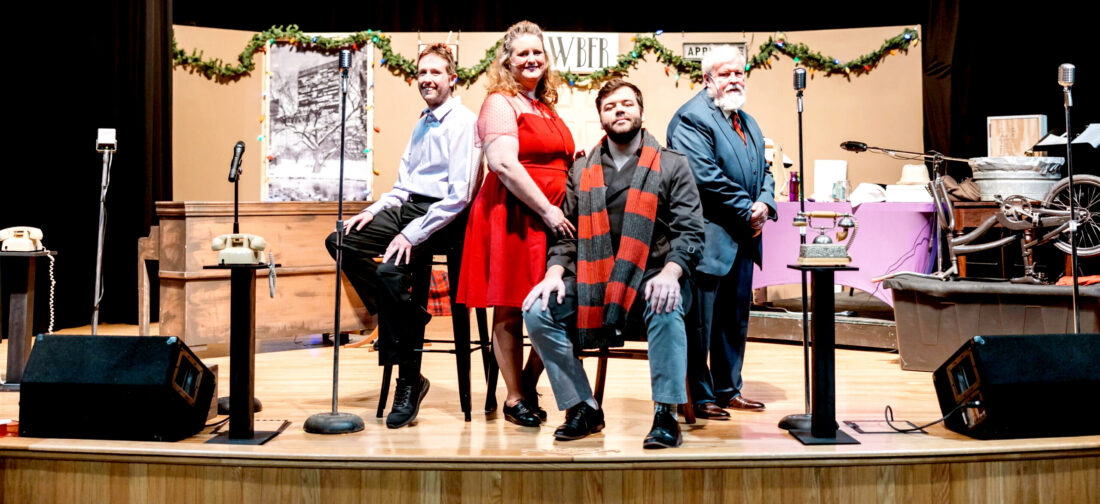 “It’s a Wonderful Life,” America’s favorite holiday movie, is being presented by Indigo Family Theater live at the Columbiana Cultural Collective. Audiences are invited to join the beloved tale of George and Mary Bailey, Clarence the Angel and many more memorable characters from this classic show. Opening night is Friday at 7 p.m., with encore performances on Dec. 10, 16 and 17 at 7 p.m. and Dec. 11 and 18 at 2 p.m. Tickets may be purchased at the door, or at https://www.simpletix.com/e/its-a-wonderful-life-live-radio-play-ticke-tickets-119193. For information, visit indigofamilytheater.com. Shown is George and Mary Bailey with Clarence the Angel and his boss Joseph on set.
