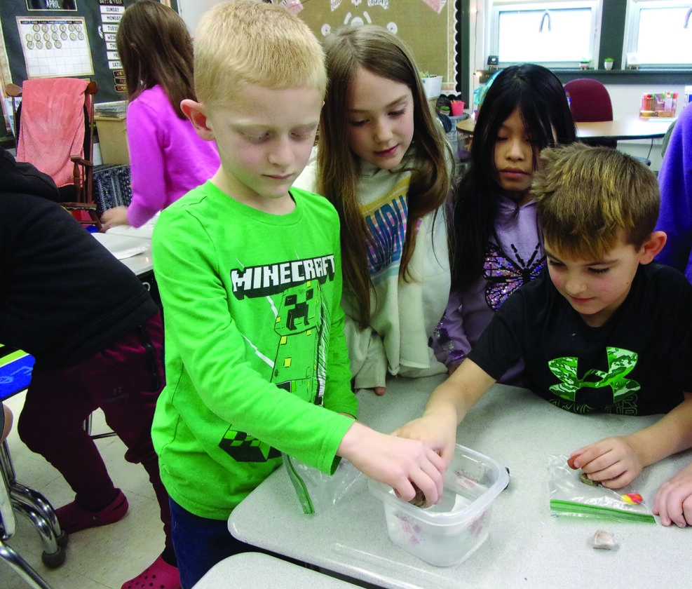 Camp Fire presented its “Geology Rocks” nature program to Buckeye Elementary School second-grade classes. Students learned about classification of rocks, examined fossils and tested out the earth’s plates and volcanoes and erosion at work through experiments and activities. Pictured (left to right) are Arthur Frederickson, Jessie Strabala, Maria Perez and Easton Carrol, students in Alexandra Winner’s class, experimenting to see what type of rock floats. For information about Camp Fire summer camps — which are open to all youth — call 330 385-0645. Camp Fire is a United Way Agency. (Submitted photo)