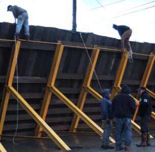 Work began shortly after 5 p.m. and the flood gate was expected to be erected by approximately 8 p.m.