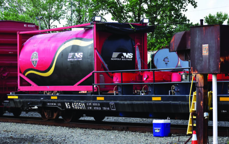 According to Norfolk Southern, the safety train includes a “dedicated locomotive, specially equipped classroom box cars, and several tanks cars for additional hands-on training along our lines.”