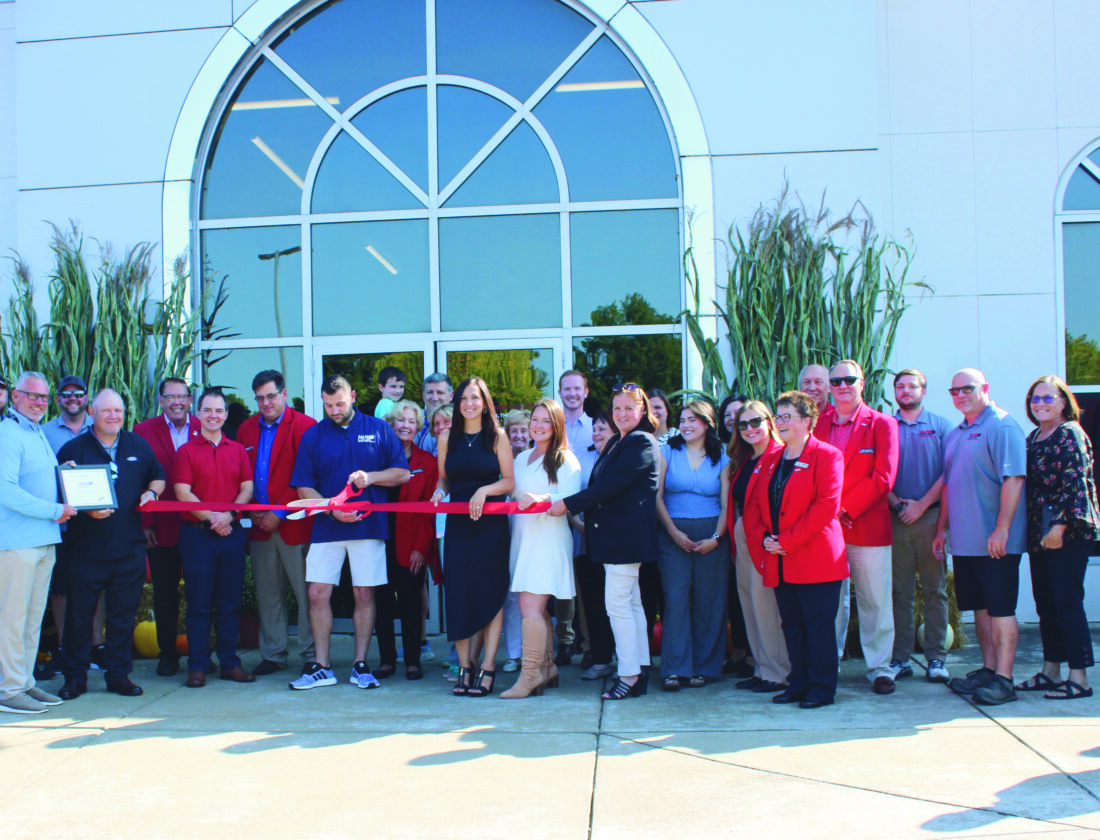 The Salem Chrysler Dodge Jeep Ram dealership celebrated its one-year anniversary Thursday with a Salem Area Chamber of Commerce Red Ribbon Cutting. General Manager Brandon Murgatroyd said that the dealership was looking forward to continuing to provide 5-star customer service to the community, and to continue supporting community events having provided vehicles for Salem parades, and for the upcoming Salem homecoming court. Murgatroyd also said the dealership would be once again holding a free drive-in movie night for the community at 5:30 p.m. Oct. 17. Shown from left are Owner and Corporate Operations Officer Bryan Day, Owner and Corporate Executive Officer Matt Wickwire, Owner and Chief Financial Officer Edward Williams, Murgatroyd, Human Resources Director Kelly Fox, Public Relations Director Kathy DeChellis, and Mayor Cyndi Baronzzi Dickey Flanked by Chamber ambassadors and executives. (Photo by Morgan Ahart)