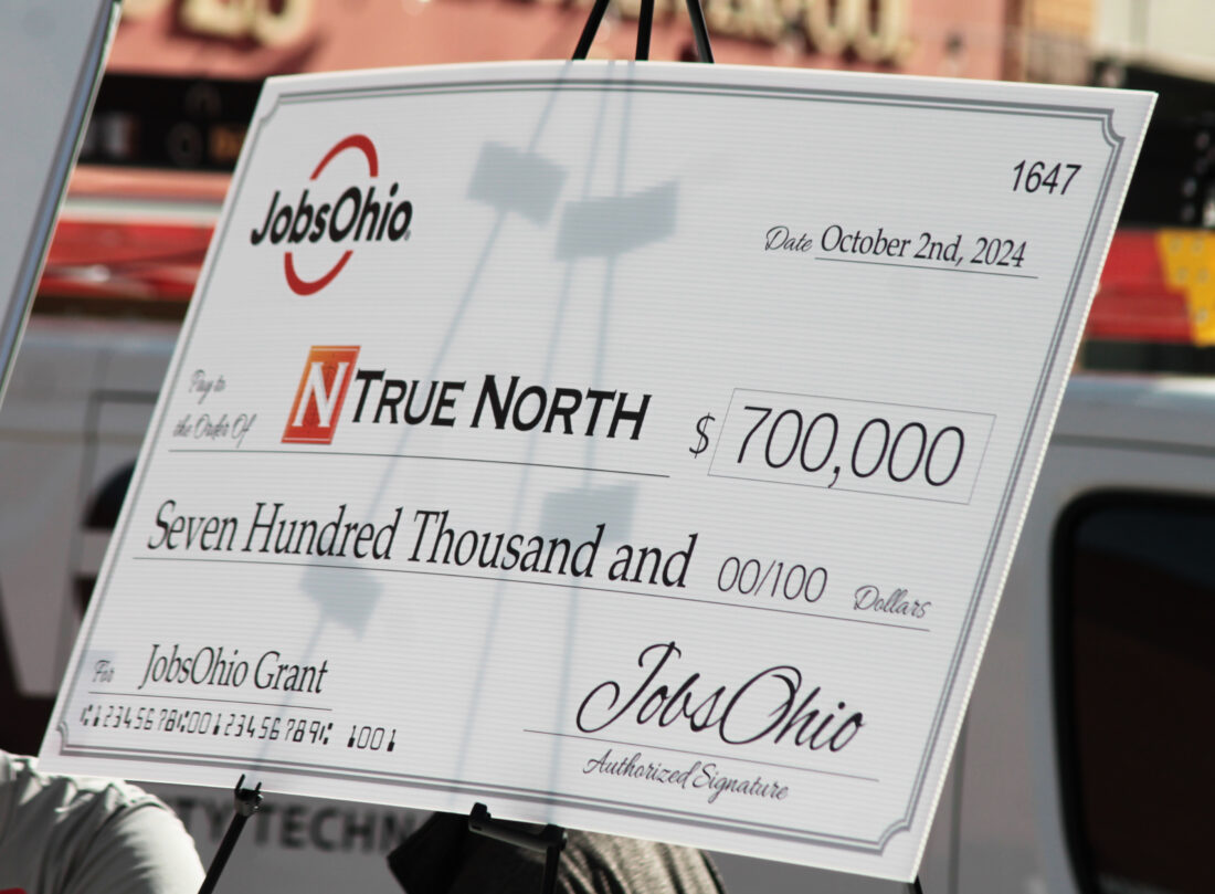 - A $700,000 check to True North from JobsOhio for renovations on the BOSS Building now known as True North LLC is on display during Ohio Gov. Mike DeWine’s visit to East Liverpool to announce the investment. (Photo by Kristi R. Garabrandt)