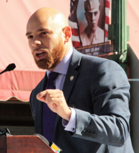 East Liverpool Mayor Bobby Smith speaks to an audience of city, council, and state officials, community members and business owners during Gov. Mike DeWine’s visit to East Liverpool to announce funding for building renovations. (Photo by Kristi R. Garabrandt)