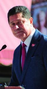 - Developer Craig Cozza, CEO, Cozza Enterprises, speaks on the importance of revitalization and historic buildings in East Liverpool during Ohio Gov. Mike DeWine’s visit. (Photo by Kristi R. Garabrandt)