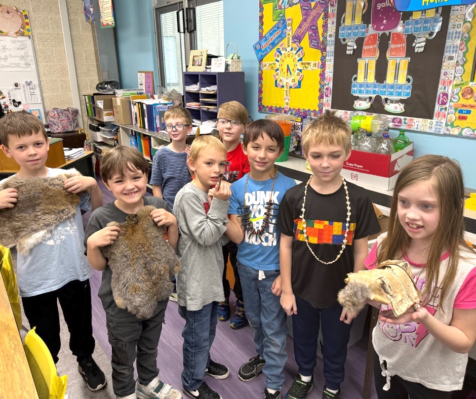 Sebring third graders explore animal furs, jewelry and tools, constructed by the Native Americans and used in their everyday lives. (Submitted photo)