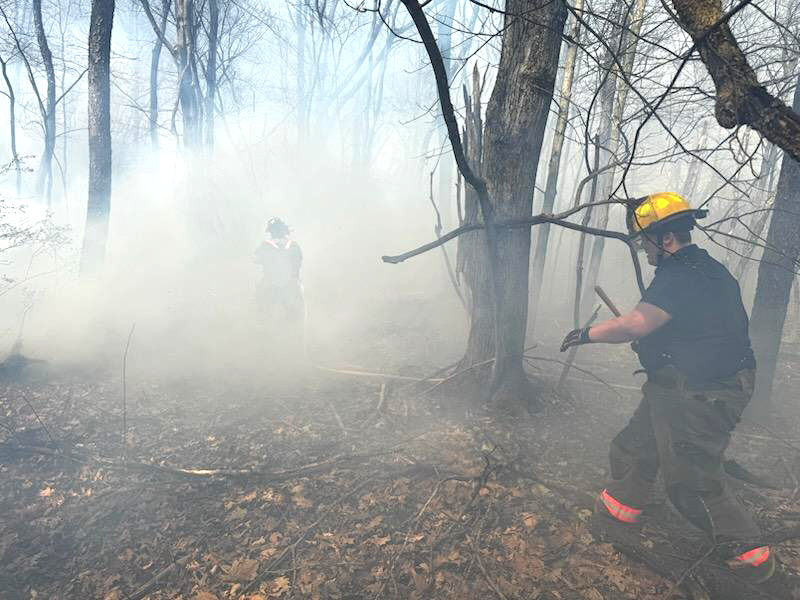 McCoy said the brush fire was difficult to get to and there were four forestry lines (hoses) stretched out a combined close to 2,500 to 2,800 feet of hose to put the fire out. It took all the hoses the departments had on the trucks.