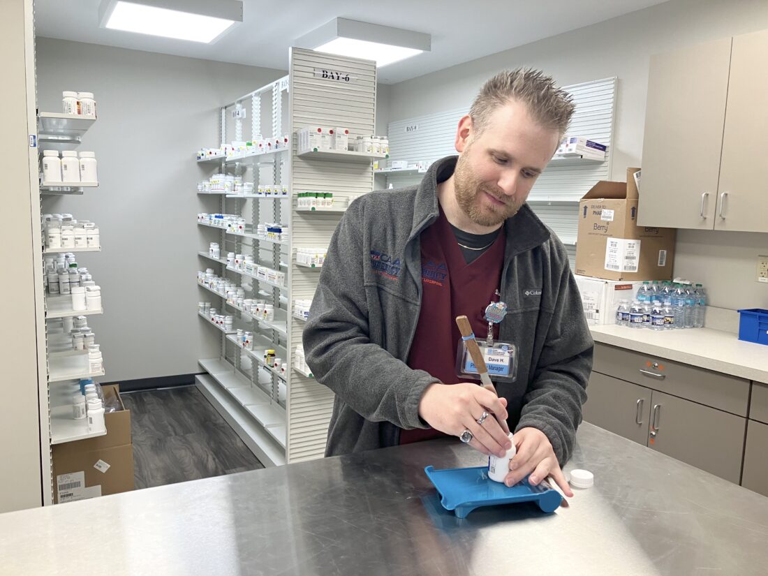 Pharmacy Manager David Hudoba starts to prepare a prescription at the new Community Action Agency of Columbiana County Federal 340B Pharmacy in Lisbon during the kickoff on Wednesday. CAACC already operates a pharmacy in Calcutta and now the one in Lisbon is open to exclusively serve patients of CAACC’s Health, Behavioral Health and Dental Centers. (Photo by Mary Ann Greier)