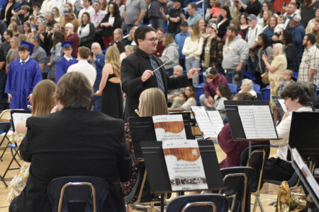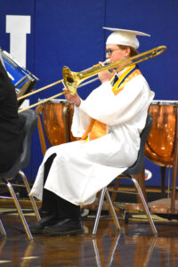 Dominic Meyer leads the Lisbon band during the procession of the David Anderson High School Class of 2025. The school held its 155th commencement ceremony Sunday afternoon at the George M. Nace Gymnasium. (Photo by Stephanie Elverd)