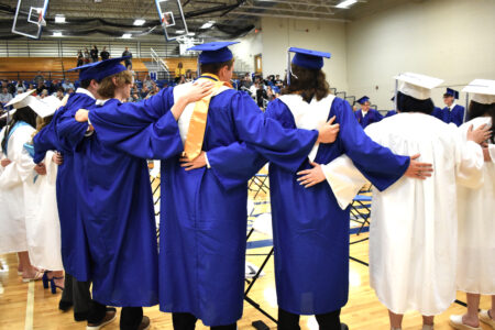 David Anderson High School graduates closed Sunday’s commencment ceremonies by forming a circle and singing the alma mater. A complete gallery of Lisbon’s 155th commencent can be viewed at morningjournalnews.com. More photos will be published in Tuesday’s edition of the Morning Journal. (Photos by Stephanie Elverd)