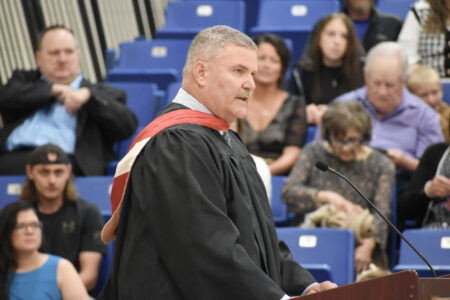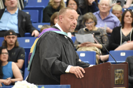 Superintendent Joe Siefke wishes the David Anderson High School Class of 2025 the best during Lisbon’s 155th commencement ceremonies held Sunday inside the George M. Nace Gymnasium. (Photo by Stephanie Elverd)
