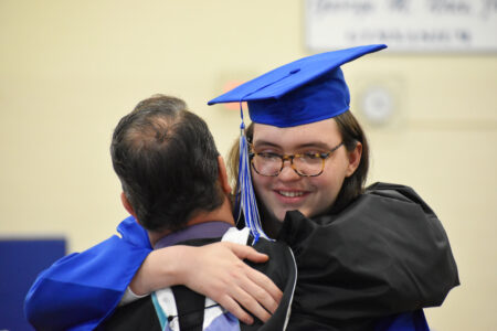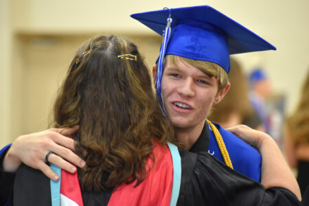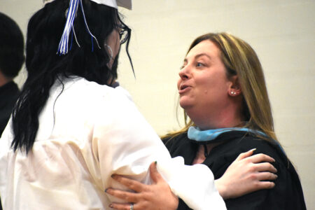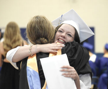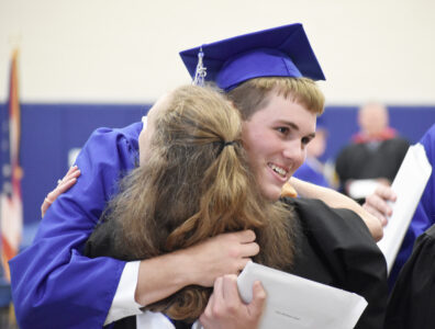 Lisbon continued its time-honored tradition of having graduates receive hugs from faculty and staff following their diploma presentations during David Anderson High School’s 155th commencement ceremony Sunday afternoon at the George M. Nace Gymnasium. (Photo by Stephanie Elverd)