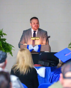Principal Andrew Garber delivers the graduation address and a Slide show of Memories from each graduate. (Photos by Jimmy Joe Savage)