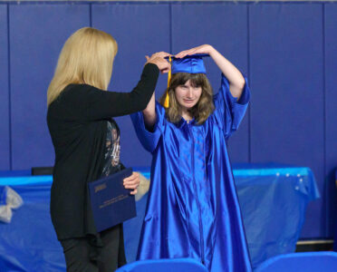 Alyssa Vega turns her tassel with assistance by Jeri Cosma. (Photos by Jimmy Joe Savage)