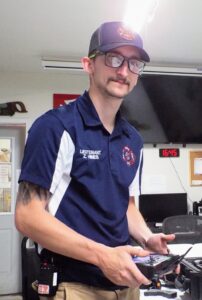 Winona Fire Department Lieutenant Zachary Himes holds the controller for the department’s DJI Mavic 3T drone which has thermal imaging capability, making it a valuable tool for everything from combating large structure fires or hazmat operations to search-and-rescue. (Photo by Stephanie Ujhelyi)