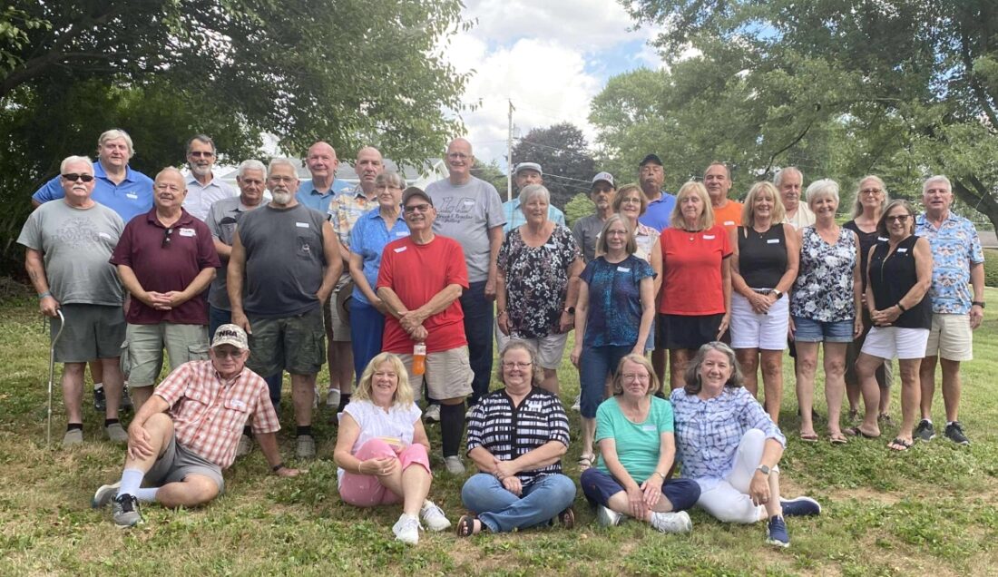 The David Anderson High School Class of 1975 held its 50-year reunion Aug. 23 at the home of Larry and Robin Muntean. From left, first row, Gary Triplett, Robin Pike Muntean, Holly Davis Black, Bonnie Culler Phillips, Nancy Taylor Crowl; second row, Joey Gouldsberry, Frank Gallo, Urban Engle, Becky Gray Alexander, Jan Nickelson McDevitt; third row, Randy Seidner, Richard Wallace, Barbara Bailey, Cathy Hanna Restifo, Cindy Sweeney Toot, Debbie Holloway Glenn, Linda Conkle Triplett, Vicki Johnson Clark; fourth row, Dick Cope, Doug Burnip, Kevin Snyder, Randy Crothers, Virgil Wherry, Dave Ward, Donnie Sweeney, Jeff Cain, Lary Muntean, Danny Rambo, Donna Bush Ward and Ted Beck. (Submitted photo)