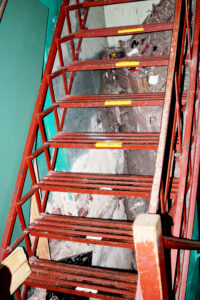- Lassiter said that while the backstage stairs to the balcony were structurally sound, that they were never enclosed from the theatre’s past as a movie theater and present a risk of personal items or props being dropped with no way to retrieve them. (Photo by Morgan Ahart)