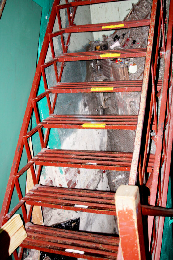 Lassiter said that while the backstage stairs to the balcony were structurally sound, that they were never enclosed from the theatre’s past as a movie theater and present a risk of personal items or props being dropped with no way to retrieve them. (Photo by Morgan Ahart)