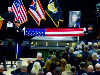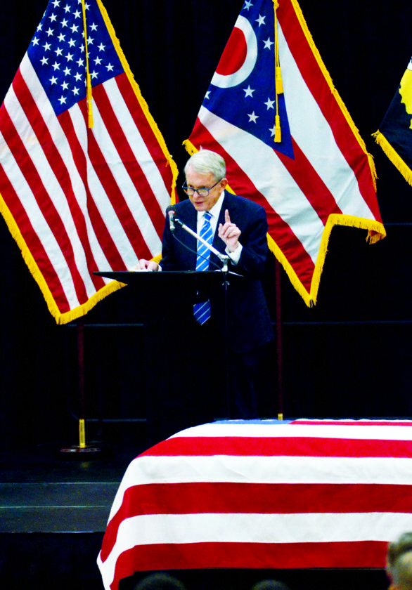 The Celebration of Life Wednesday afternoon not only included the playing of “Taps,” a flyover and folding and presentation of the U.S. flag, but it featured remarks by Ohio Gov. Mike DeWine, a representative from the Ohio Army National Guard military police company that Cayton served with in Afghanistan in 2013 and a longtime friend from the Carrollton area where Cayton grew up.