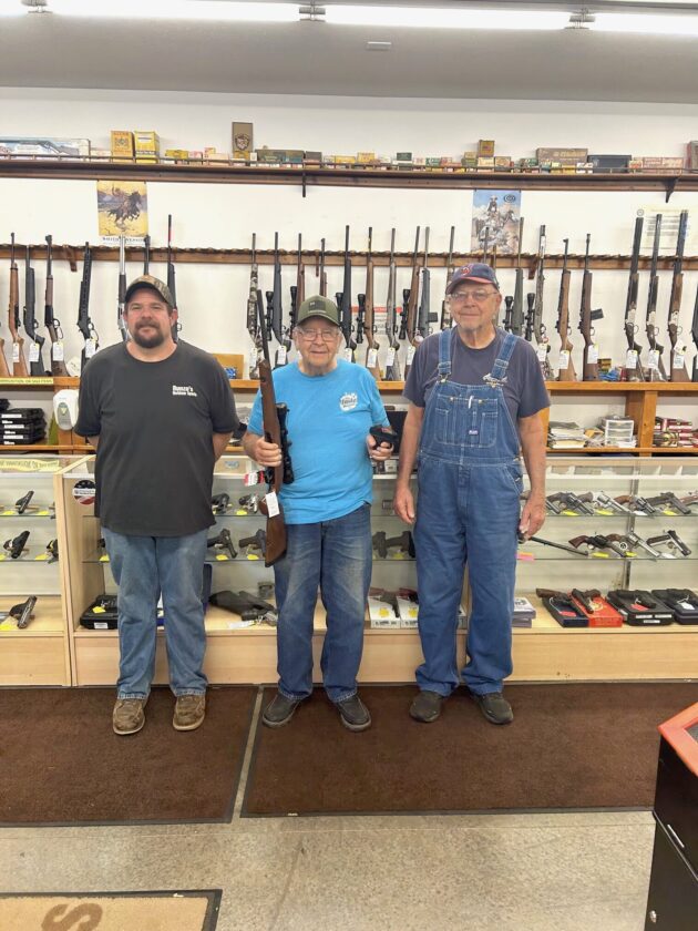 The Lisbon Ruritanas recently held their annual gun raffle. The winner this year was James Sadler of Lisbon. Proceeds are used to give scholarships every year to deserving high school seniors. The Lisbon Ruritans recognized all who participated in this year’s raffle including Mike Runzo and his staff at Runzo’s Outdoor Sports in Beloit, The Rogers Sale, The Lisbon VFW, The Lisbon Chamber of Commerce, and Tom Leetch at Cooks Barber Shop in East Palestine. Pictured, from left, Drew Wartluft (Runzo’s), James Sadler (2025 winner), and Joe Csonka (Lisbon Ruritans). (Submitted photo)