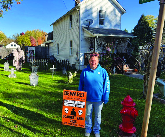 - Jessica Davis at E. Highland Ave. at Leake Street was named the “Scariest” winner of the first-annual East Palestine “Halloweentown” home decorating contest. (Submitted photo).
