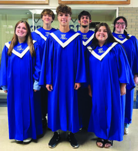 Pictured are members from the East Liverpool Potter Blues show choir, front, from left, Alana Cornell, Nolan Irving, and Kelsey Stover; back, from left, Logan Cornell, Tyler Ruess, and Jazmine Hughes. (Submitted photo)