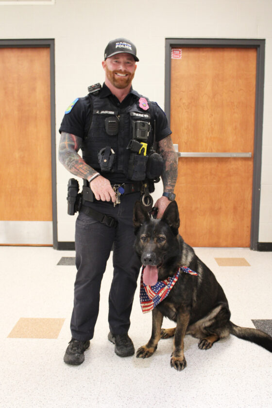 “K-9 Noras has served with honor and distinction since 2018, partnering with Officer (Joshua) Jackson as a key member of our K-9 Unit. Throughout his years of service, K-9 Noras demonstrated unwavering dedication, courage and loyalty in the line of duty,” McKenzie said. “He has played a vital role in narcotics detection, search and rescue operations, suspect apprehension, community outreach and has been instrumental in securing the safety of both officers and the community we serve.”
