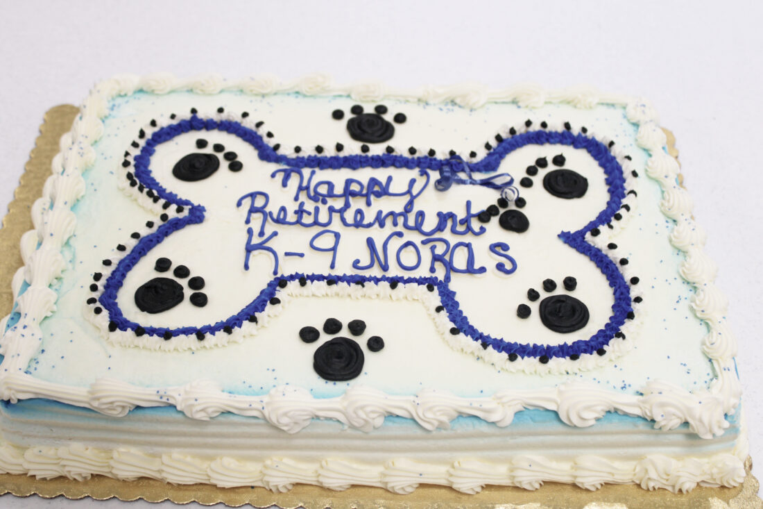 K-9 Noras’s retirement from the St. Clair Police Department was celebrated with a cake for him. (Photo by Kristi R. Garabrandt)