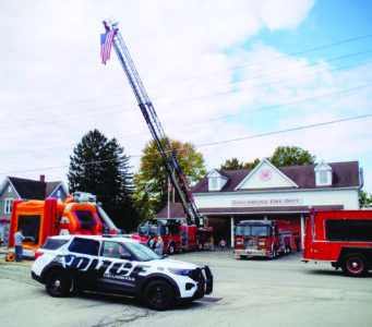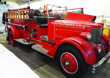 In addition to various pieces of modern fire equipment, Columbiana firefighters also had this vintage fire truck on display in the fire station. The truck is a 1937 Stutz and has a Hercules motor that was made in Canton. The motor (not the truck) still runs and pumps. (Photo by Stephanie Ujhelyi)