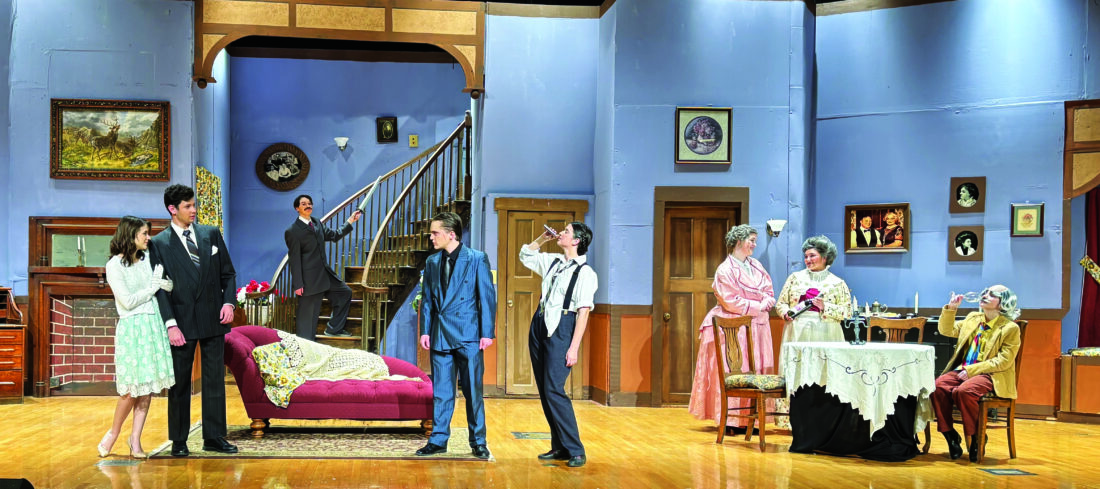 The fall play “Arsenic and Old Lace,” under the direction of Attila Samu and assisted by Lorina Moffett, will be presented on stage at Salem High School’s auditorium this Saturday at 7:30 p.m. and Sunday at 2 p.m. “Arsenic and Old Lace” is a black comedy play about a drama critic, Mortimer Brewster (Nathan Fowler) who discovers his sweet, elderly aunts; Abby (Meredith Powell) and Martha (Becca Hileman) Brewster, have been poisoning lonely old men with elderberry wine –believing it to be a mercy to “put them out of their misery.” The chaos escalates when Mortimer’s murderous and disfiguring brother, Jonathan (Alex DeRienzo), returns with his plastic surgeon accomplice, Dr. Einstein (Mave Johnson), and complicates Mortimer’s efforts to protect his aunts and their deadly secret. This hilarious comedy, written by Joseph Kesselring, was so popular as a play in 1941 that the film adaptation of the same name, starring Cary Grant, had to be postponed for release until 1944. Shown are, Lily Hill as Elaine; Nathan Fowler as Mortimer Brewster; Jacob Capaldi as Teddy; Alex DeRienzo as Jonathan; Mave Johnson as Dr. Einstein; Meredith Powell as Aunt Abby; Becca Hileman as Aunt Martha and Sophia Mohn as Mr. Witherspoon. Tickets can be purchased online by going to https://salemquakers.k12.oh.us/box-office/ Tickets will also be sold at the door. (Submitted photo)
