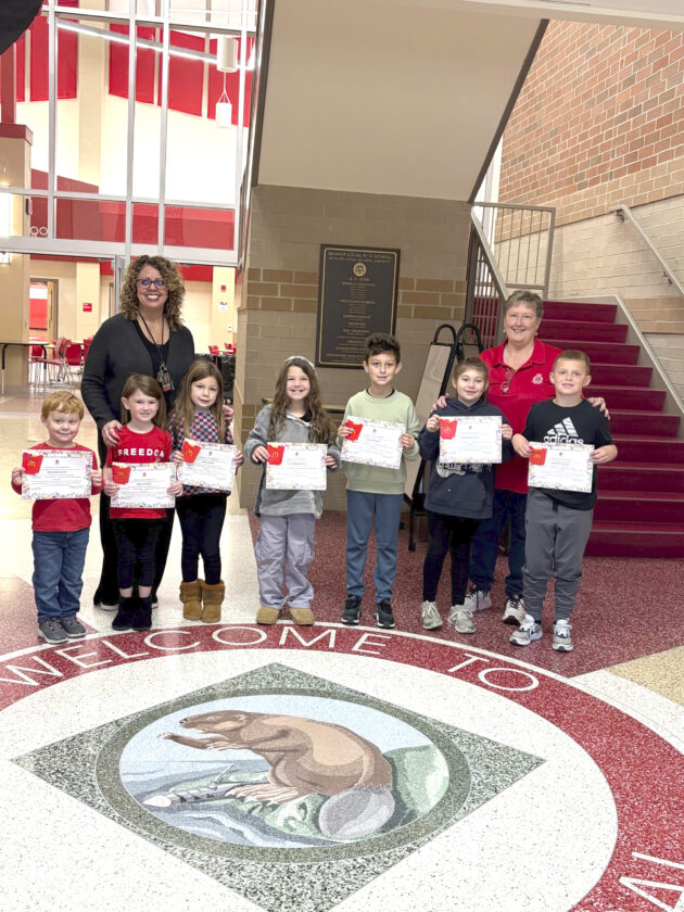The Calcutta Lions Club recently honored six Beaver Local Elementary students in grades pre-k through fourth with gift cards and a certificate for the second nine-week grading period. C.L.A.S.P. stands for Calcutta Lions Award for Student Proficiency. The Calcutta Lions want to honor students who exemplify outstanding character through demonstrating regular attendance, caring behavior, good listening skills, positive work habits and exemplary citizenship. Back row – Principal Brianne Hall and Lion Janet Christen: front row left to right: pre-K Aella Varsho, Kindergartner Alivia Knopp, 1st grader Elli Derenburger, 2nd grader Jack Stowers, 3rd grader Renesmay Bailey and 4th grader Benson Sterling. Congratulations and job well done! (Submitted photo)