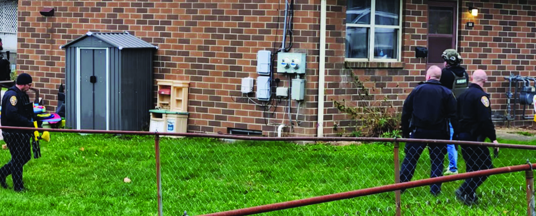 East Liverpool police officers assist the Columbiana County Drug Task Force in the execution of a search warrant, Wednesday morning at 1618 Park Ave., East Liverpool. (Submitted Photo)