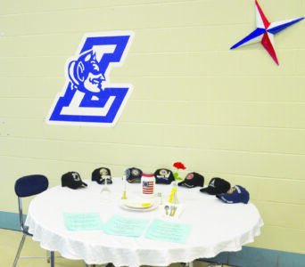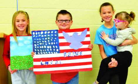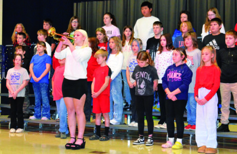 Lisbon McKinley Elementary honored veterans Tuesday with a special fifth-grade music, art and breakfast program. The students played a medley of the five armed services songs ending with “America the Beautiful.” Their performance ended with the children singing “Grand Old Flag.” DAHS juniors Ariel Smith and Zylar Mundy played “Taps.” (Photo by J.D. Creer)