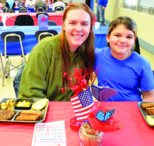 U.S. Marine veteran Taylor Dubose of Hubbard and her niece, fifth-grader Divinity Perez, enjoyed breakfast together.