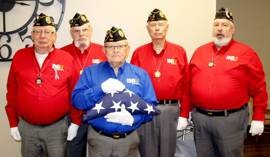 The Youngstown Disabled American Veterans Chapter Two Mahoning County Color Guard performed multiple ceremonies at the event. Commander Don White described being asked to attend and participate as an honor. Shown from left are Youngstown Disabled American Veterans Chapter Two Treasurer and Fundraising Chair Bob Cooper, Past Commander Don White, Commander Terry Mackey, Veteran’s Services Commissioner Dale Baringer, and Milo Johnston. (Photo by Morgan Ahart)