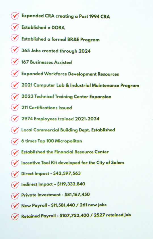 - The event concluded with the official launch of the city’s new video post card economic development campaign which will see postcards with a built-in video player showing six professionally produced advertisements which “display Salem’s manufacturing excellence,” to potential developers. (Photo by Morgan Ahart)
