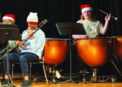 A total of 105 East Liverpool Junior Senior High musicians graced the stage earlier last week for the 2025 Holiday Band Concert, sharing an evening filled with festive favorites and impressive performances from every ensemble. Pictured, Intro to Band — performing Up on the Housetop — a joyful kickoff that showcased our newest musicians. (Photo by Jimmy Joe Savage)