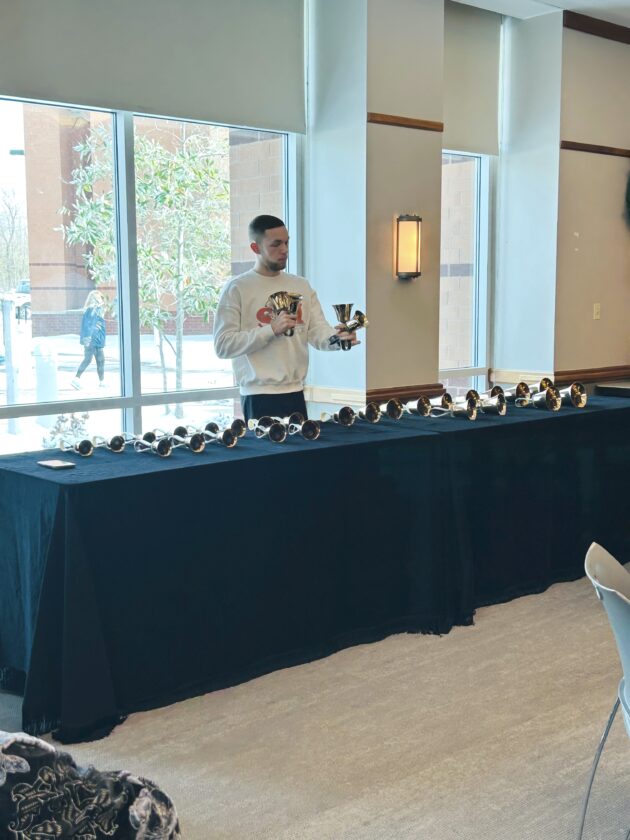 Owen Joyce played handbells for Rotarians at the Salem Rotary Club’s Dec. 16 meeting, performing several Christmas songs as the Salem Rotary club continues to ring in the holiday season. (Submitted photo courtesy of Brittany Maniscalco)