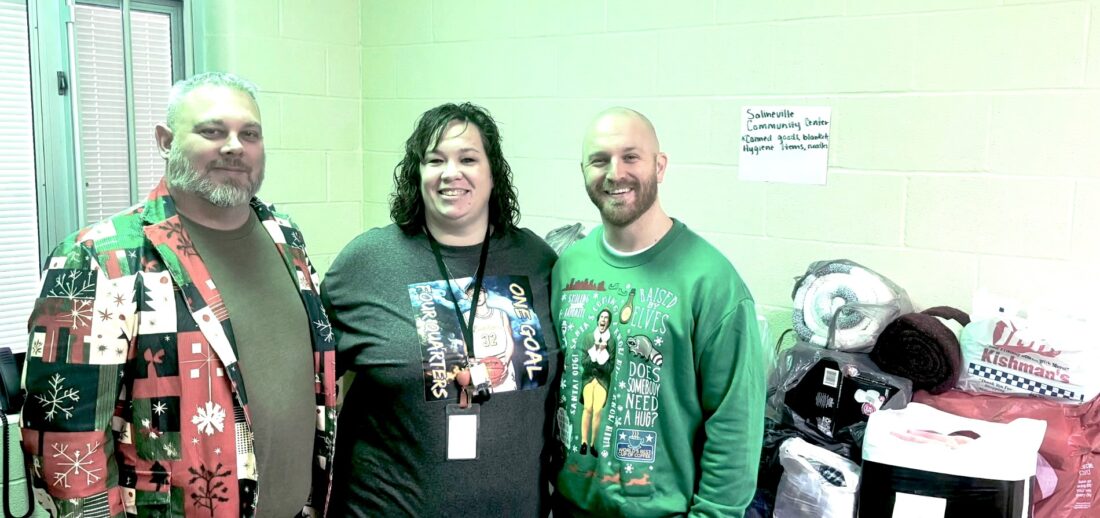 Principal Jess Krulik said staff and students have been contributing to collections throughout the month leading up to the holiday break with a different campaign each week. Krulik and educator Mikie Peters coordinated efforts with SLHS National Honor Society advisor Bob Shansky, and the staff was directed to bring towels and blankets, diapers and dog or cat treats, and hygiene items and sponges while students donated Christmas cards, toys, and canned goods to support local families, animal shelters, and nursing homes. The NHS oversaw collections each morning in the homeroom classes while Peters handled drop-offs with the community agencies. Among the recipients are the Columbiana County Dog Pound, the county Humane Society, Angels for Animals, and the Southern Community Center of Salineville Food Pantry.