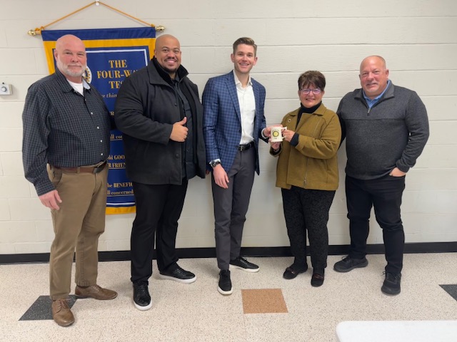 The Calcutta Rotary Club met Thursday at the Peter Metrovich Community Center. The guest speaker was Lisa Painter, deputy director at ELCPR. Painter discussed the East Liverpool Heritage Bike and Walking Trail, including the group’s fundraising target, the location of the trail and future expansion plans. Pictured is East Liverpool Mayor Bobby Smith, president of ELCPR Stu Wallace, Rotary Program Chair David Bickerton, Painter, and Bill Reiner, executive director of ELCPR. To learn about the bike trail or to make a donation, visit downtowneastliverpool.com. (Submitted photo)
