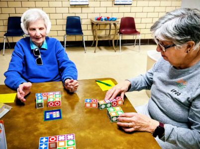 - From left, Patty Elder and Susan DellaVolle both of East Palestine play a game during a recent winter walking event at the Way Station. EPGO organizes the program to offer a fitness and socialization option for village seniors. (Submitted photo)