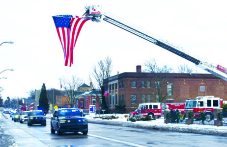The ceremony was preceded by a procession which included approximately 30 vehicles and was led by Simon’s partner Sgt. Mike Garber. Despite the chilly weather, residents lined the procession route to pay their respects to Simon. (Photo by Mary Ann Greier)
