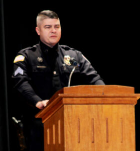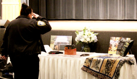 Salem Community Foundation Chief Operating Officer Brittany Maniscalco led a prayer for Simon and said that working with Garber and the department since 2015 had been a pleasure, and that “when Simon joined the Salem Police Department he represented more than a new program, he represented progress.” Maniscalco said that from the start of his career Simon brought “excitement pride, and a new sense of purpose not only to the officers who worked alongside him, but to the city he served.”