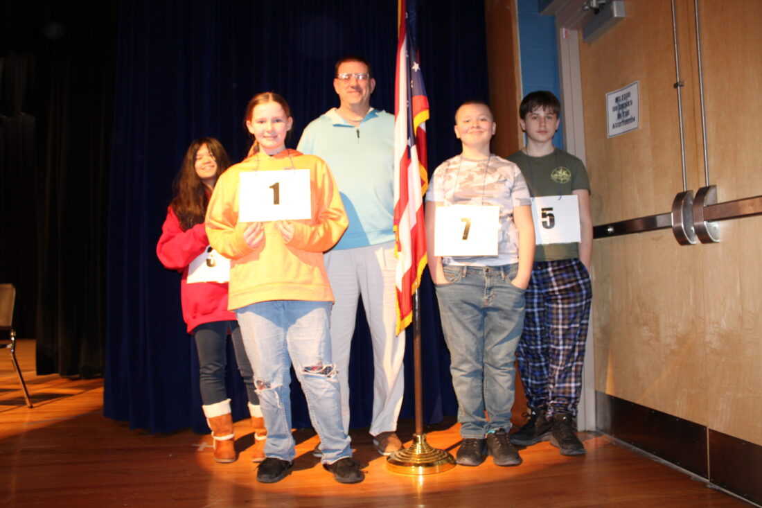 The spelling bee was coordinated by John Smith, teacher, and judged by Meghan Klenotic, Deena Hunt and Lori DeMarco, all language arts teachers.