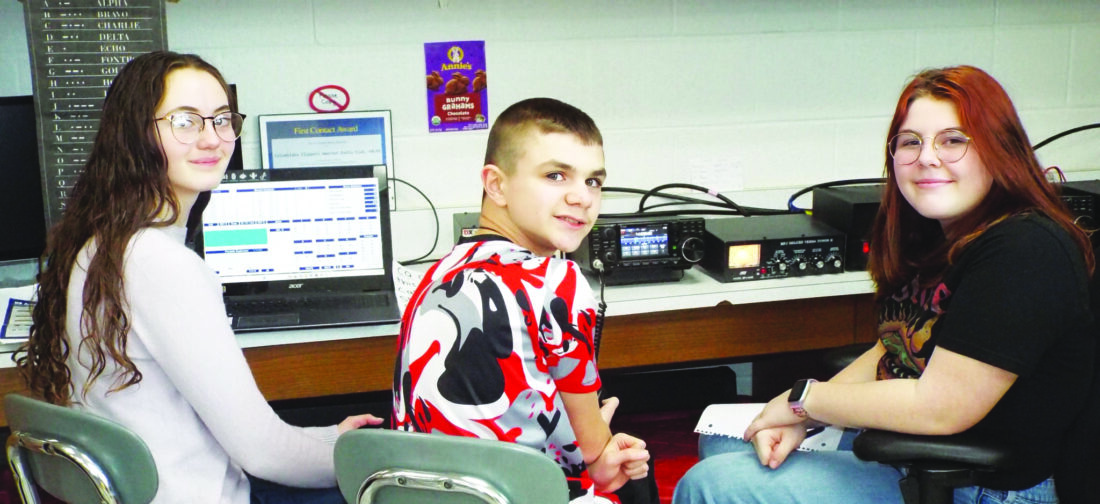 Columbiana Middle School students Elise Campbell (KE8TYU), grade 8; Josh Henderson, grade 7; and Savannah Howard, grade 11 participate Tuesday afternoon in the February American Radio Relay League (ARRL)’s School Club Roundup event. Columbiana has one of only a handful of school districts that have amateur radio clubs in Ohio. (Photo by Stephanie Ujhelyi)