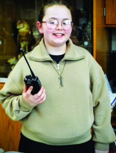 Columbiana Middle School fifth-grader Eve Campbell (KF8CAN), who is a member of the district’s Amateur Radio Club, holds a handheld AT transceiver radio, which is the equivalent as a high-brow walkie talkie and used often during their field days. (Photo by Stephanie Ujhelyi)