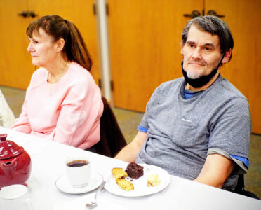 Siblings Sherry and Richard Gorcheff, both of Columbiana, enjoy fellowship with their peers. (Photo by Stephanie Ujhelyi)