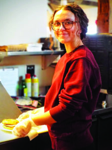 - Annelise Myer of Lisbon works on a breakfast panini sandwich for a customer Thursday afternoon at the Cider Mill Coffee and Cafe in East Fairfield, where she is employed. (Photo by Stephanie Ujhelyi)